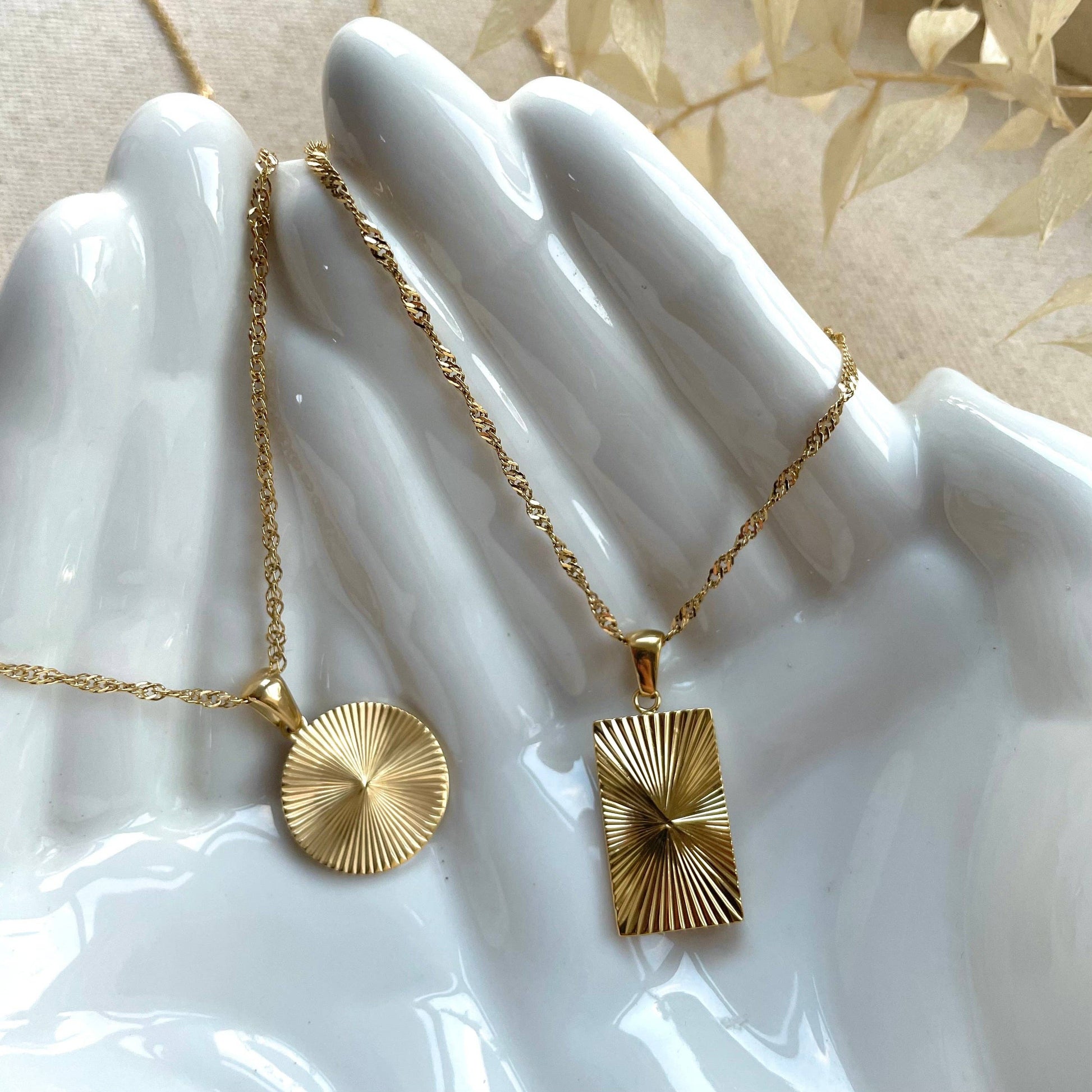 A solid gold plated vintage inspired pendant on a twisted gold chain. Polished 18k gold plated finish, that won’t fade or tarnish. Chain is 40cm with a 5cm extender chain. Hypoallergenic, hard-wearing steel base for sensitive skin. Timeless design, made to be loved all year round. Waterproof jewellery. Tarnish resistant.