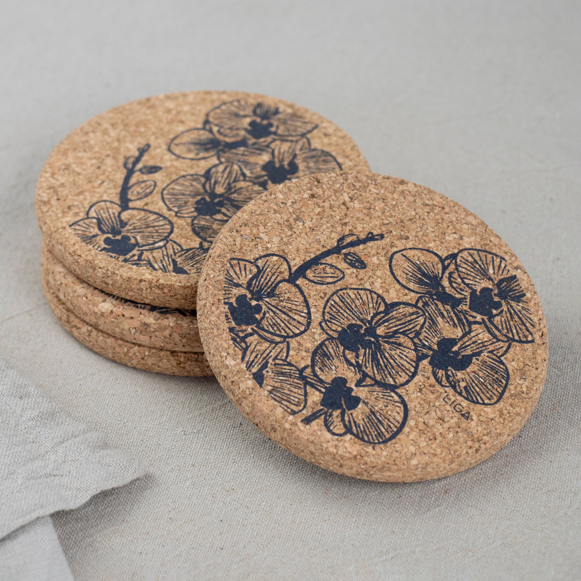 Organic cork coasters with simple contemporary designs. Inspired by nature, grown in Portugal, hand printed in Cornwall.