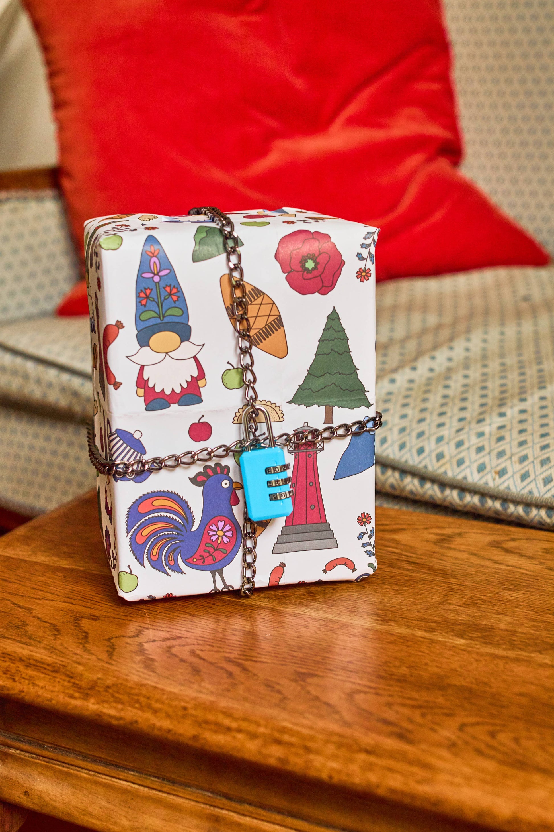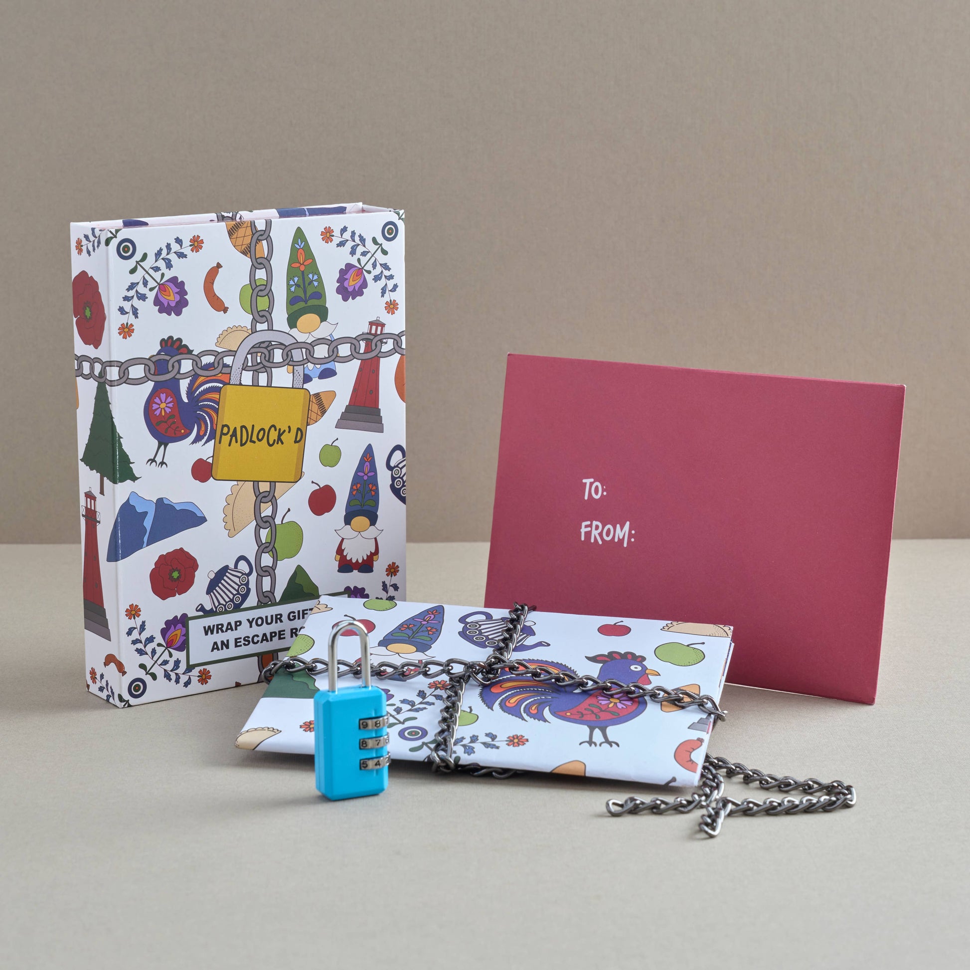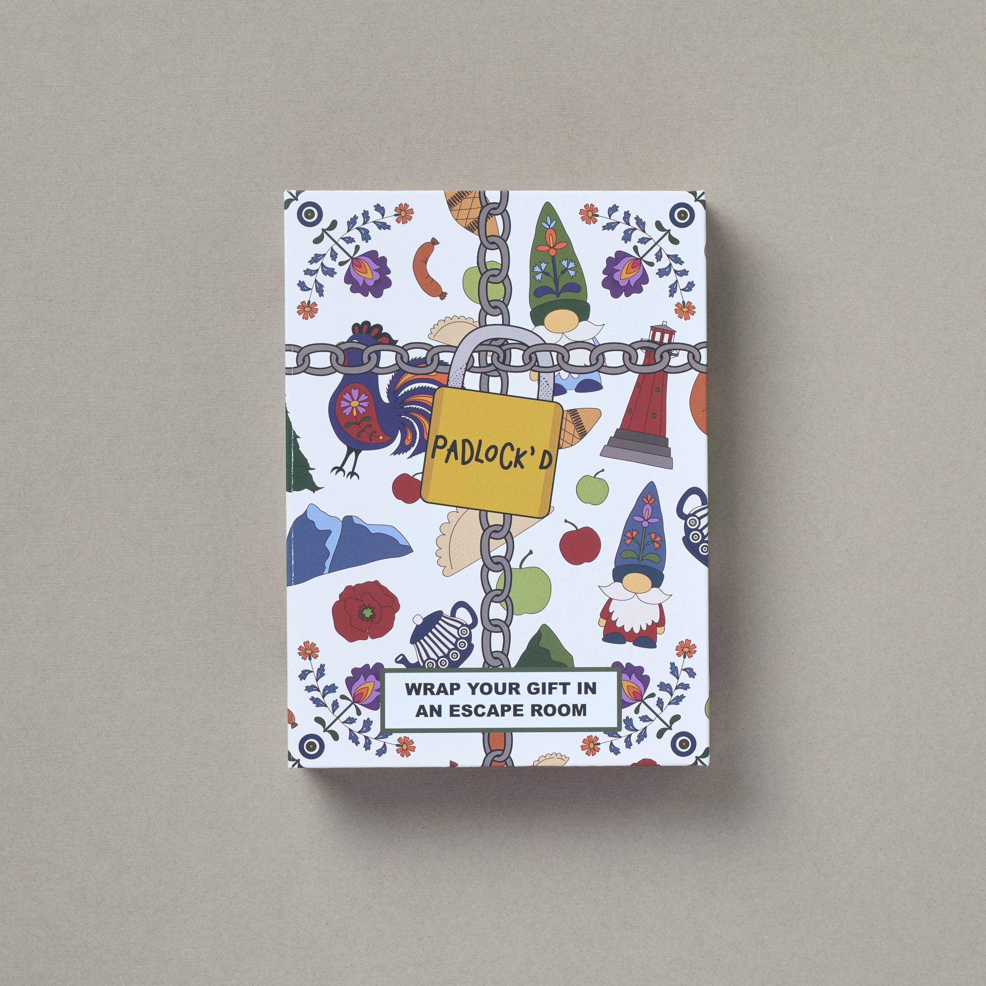 A member of the totally reimagined range of Padlock'd games. Elevate your gift for any puzzle fan! This puzzle game was dreamt up in Poland's old town streets - somewhere between a plate of pierogi and stroll past a gnome or two. From cobblestones to Chopin, this is ideal for someone with a fondness for folklore and brainteasers. Contents: - Wrapping paper (66c60cm) - 1.4 metre chain - x1 padlock - An envelope containing 5 escape room-style puzzles How to Use: - Customers choose their gift of choice, wrap it up, and use the padlock and chain to secure it. - They hand it to the recipient with the puzzle envelope, containing everything they need. - The recipient unlocks their present one sun-drenched puzzle at a time! Aimed at 14+ with a playing time of 30-60 minutes.