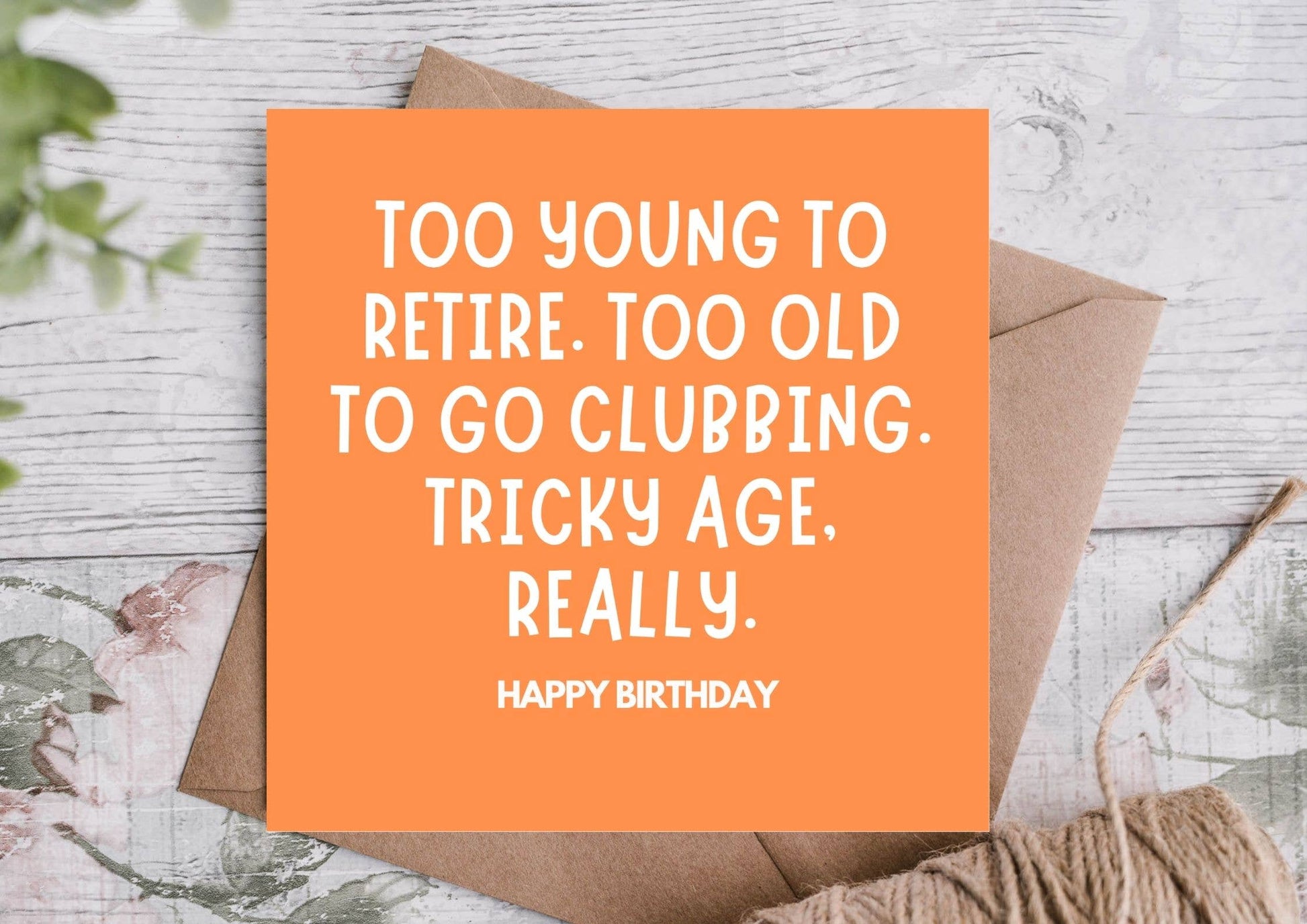 Too Young To Retire, Too Old To Go Clubbing Funny Birthday Card. Crafted with love and care, this card is a perfect blend of beauty and sentimentality. Comes with a kraft envelope, blank inside for your own personalised message.